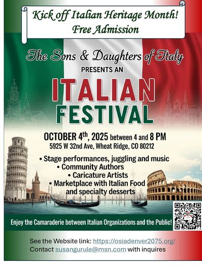October 4th - Italian Heritage Celebration October 11th - Spaghetti dinner