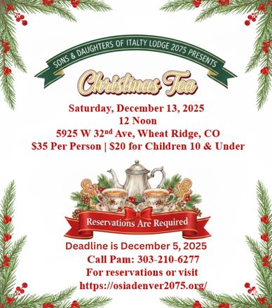 While these Anniversary Party and Italian Heritage Month seem months away, planning needs to take place now. Please text the Events Coordinator Susan Giamarvo at 720-484-1014 or email her at susangurule@msn.com to get involved.