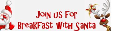 Breakfast will begin at 10:00 am, and Santa will arrive shortly thereafter.